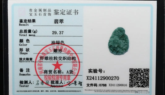 VINTAGE Certified Jadeite Green Jade Peacock Pendant w/ Adjustable Chord G270