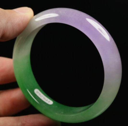 VINTAGE Small Jadeite Green/Lavender Jade Bangle Size 56 MM White Lavender ICY Jade! G665