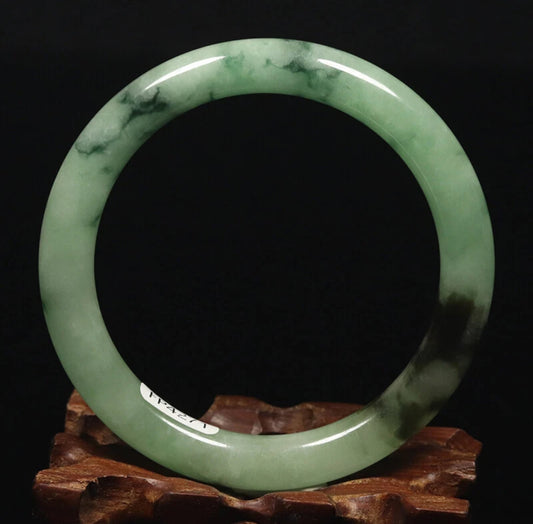 VINTAGE Medium Jadeite Green/White Jade Bangle Size 59 MM Marble Floating Flower Jade G163