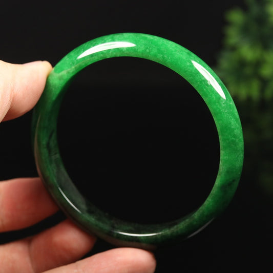 VINTAGE Large Jadeite Green Black/Jade Bangle Size 63 MM Authentic Black Jade G773