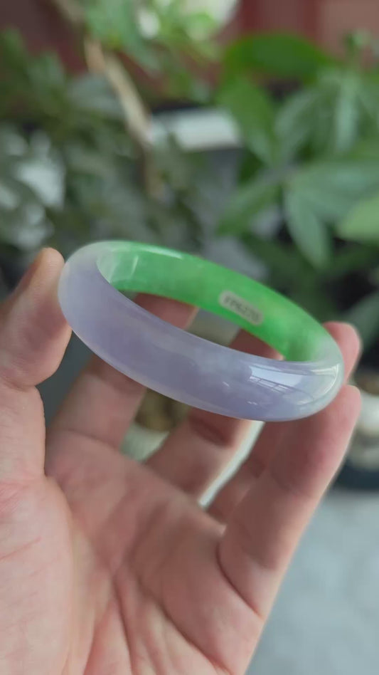 VINTAGE Medium Jadeite Green/Lavender Jade Bangle Size 59MM S270