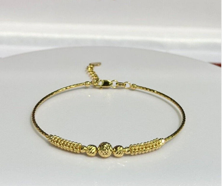 VINTAGE-Owned 14K Yellow Gold Hollow Bangle Faceted Bracelet Size 7” - Fine Gold Piece