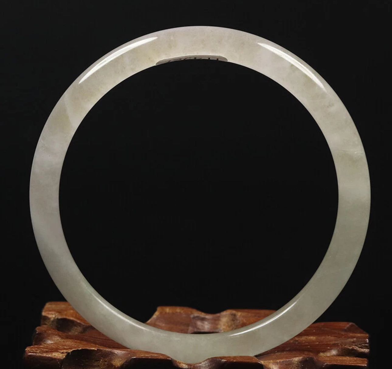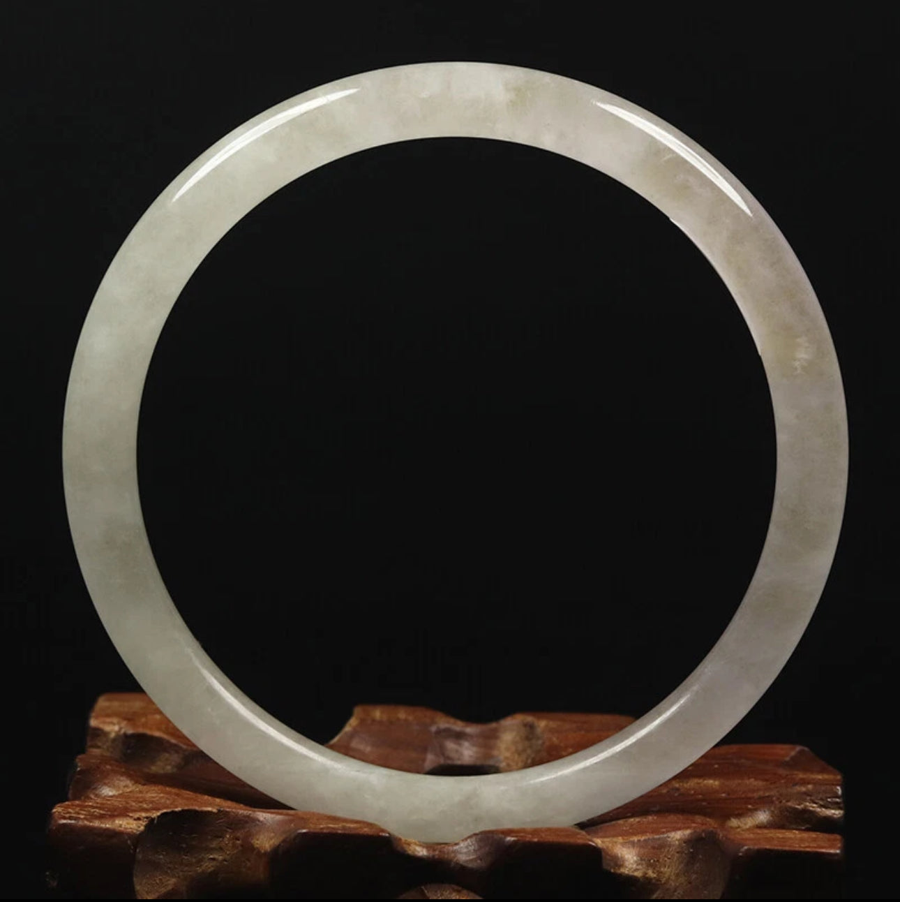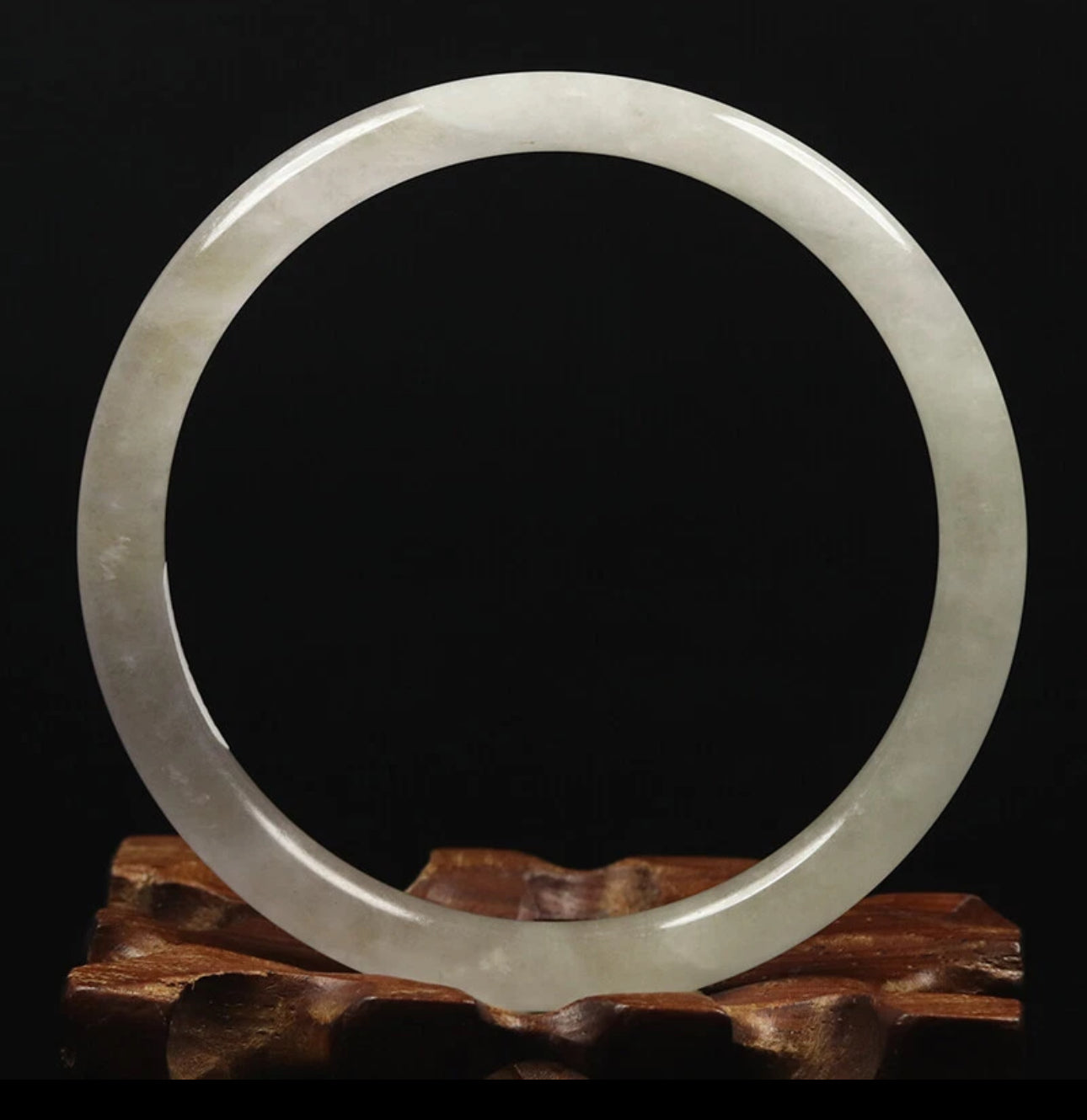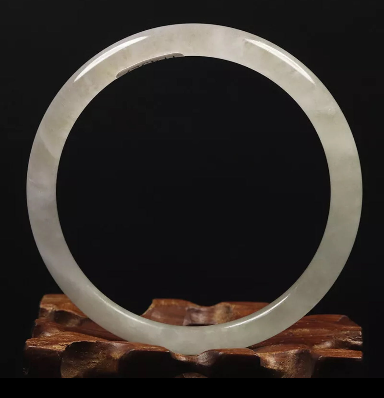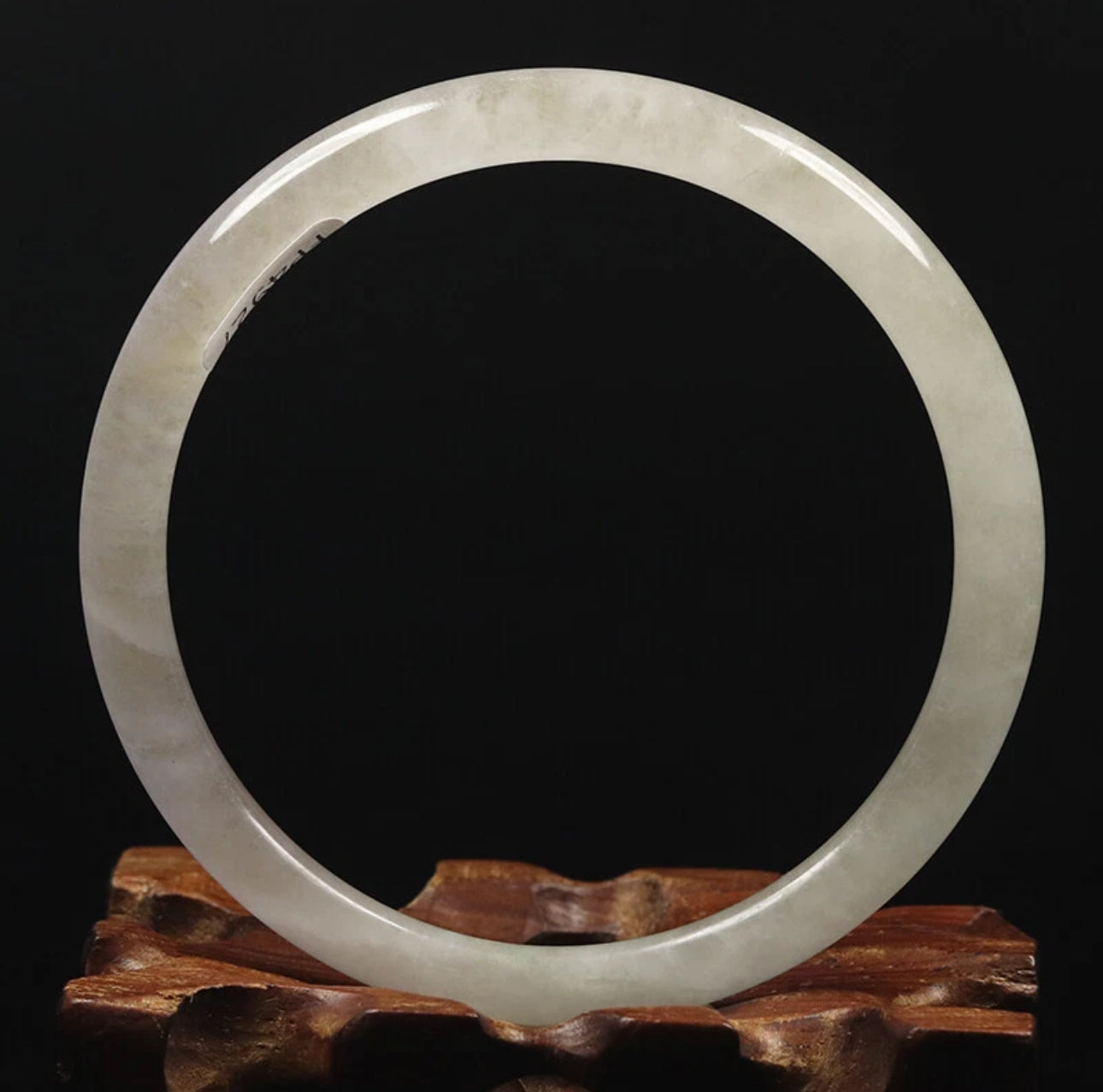 Beautiful Vintage 100% natural jadeite jade bangle bracelet. This is an exquisite white green icy Jade bangle