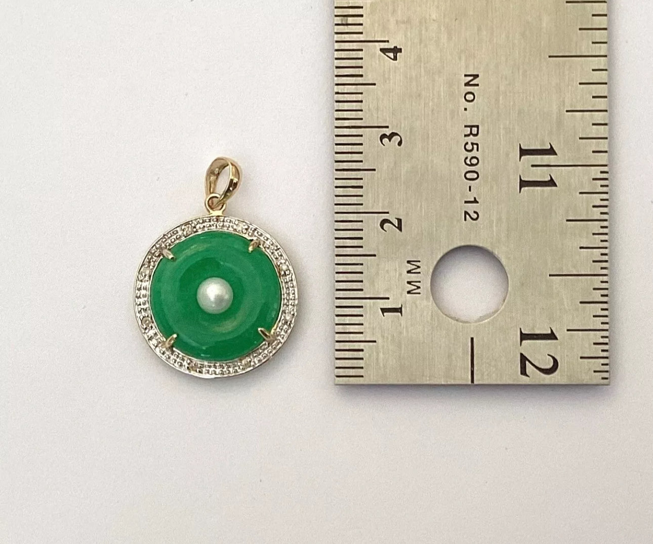 VINTAGE Owned never worn or used, jade green round Pi pendant w/ pearl inside and detail diamondsBrand new , Elegant Solid 14K Yellow Gold Jade With Diamonds & Pearl charm, pendant for necklace .