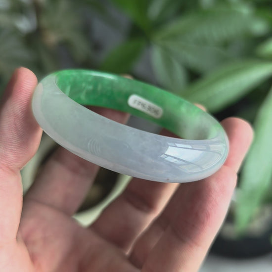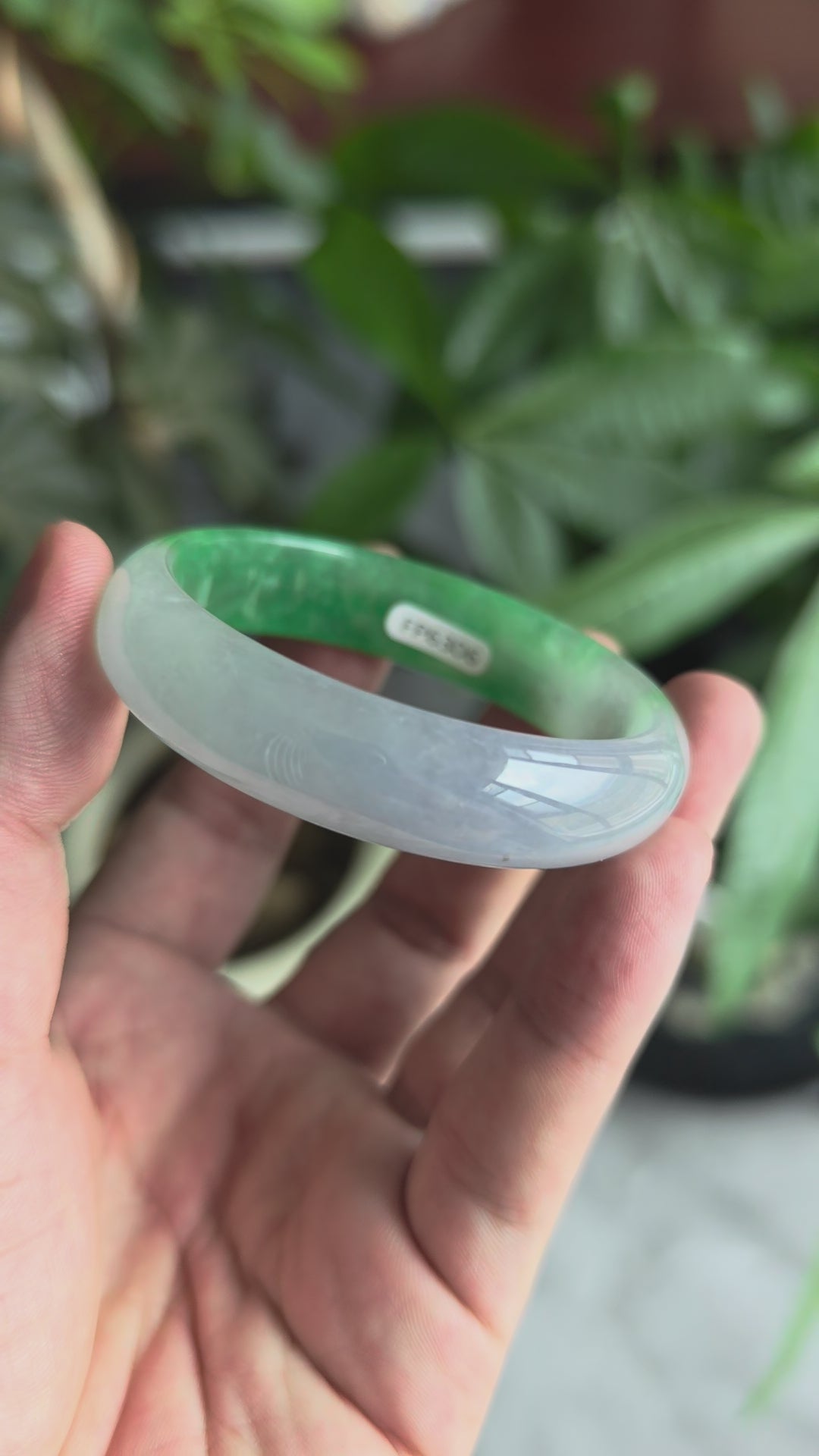 VINTAGE Small Jadeite Green/Lavender Jade Bangle Size 56 MM White Lavender ICY Jade! G665