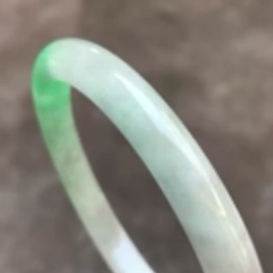 Vintage 100% natural jadeite jade icy bangle bracelet. Gorgeous green icy jade bangle, green, white . Beautiful hues when held up to natural light. This is a round outside regular standard cut bangle.
